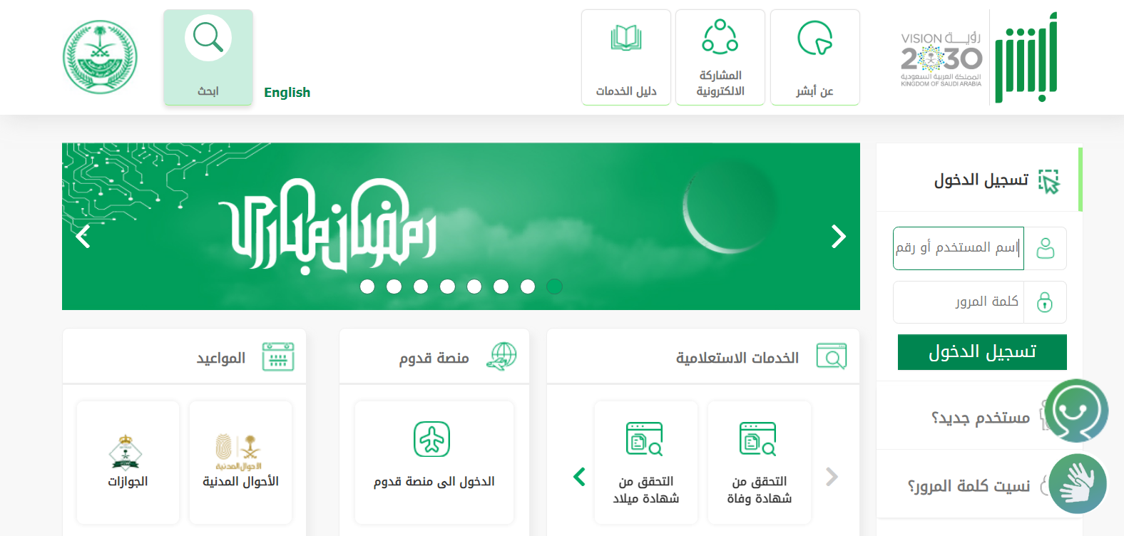 - الدخول إلى بوابة أبشر الإلكترونية.