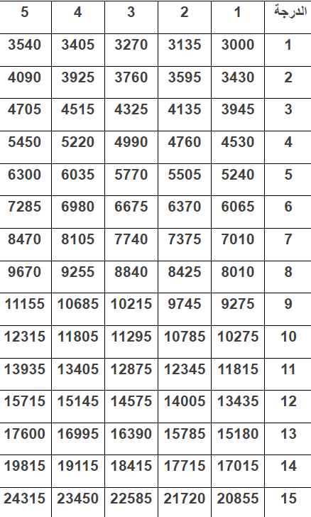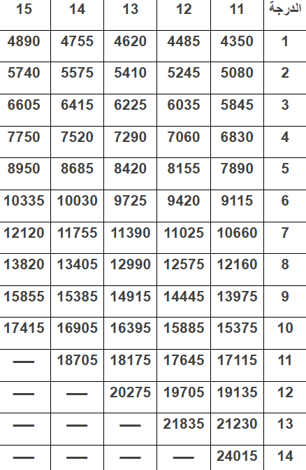 3- رواتب الرتبة الحادية عشر إلى الرتبة الخامسة عشر