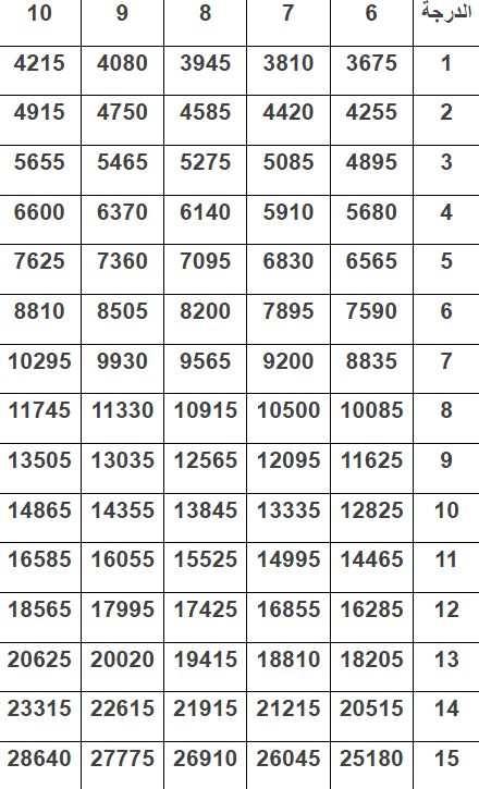 تكون قيمة الرواتب في ازدياد دائمًا كلما ازدادت الرتبة وهذا ما سوف نلاحظه في رواتب الرتبة الحادية عشر إلى الرتبة الخامسة عشر في الآتي: