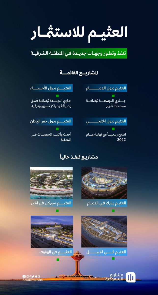 تسعى مجموعة العثيم تنفيذ عدد من مشاريع التسوق في المنطقة الشرقية بالسعودية وعددها ابرعة مولات.