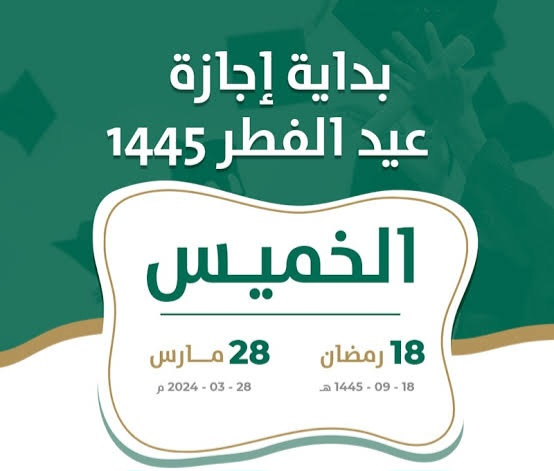 اجازة عيد الفطر 2024 للقطاع الحكومي السعودية