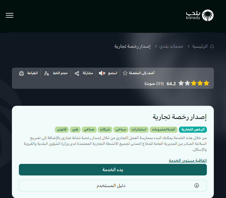 - ثم اختر خدمة إصدار رخصة تجارية.