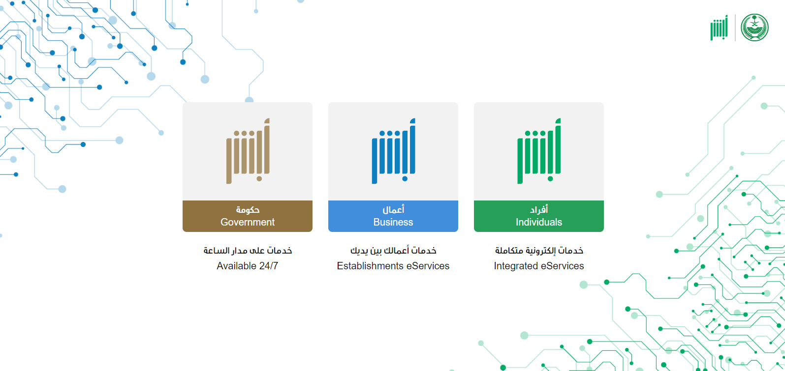 - قم بالتوجه إلى منصة أبشر الإلكترونية "من هنا".