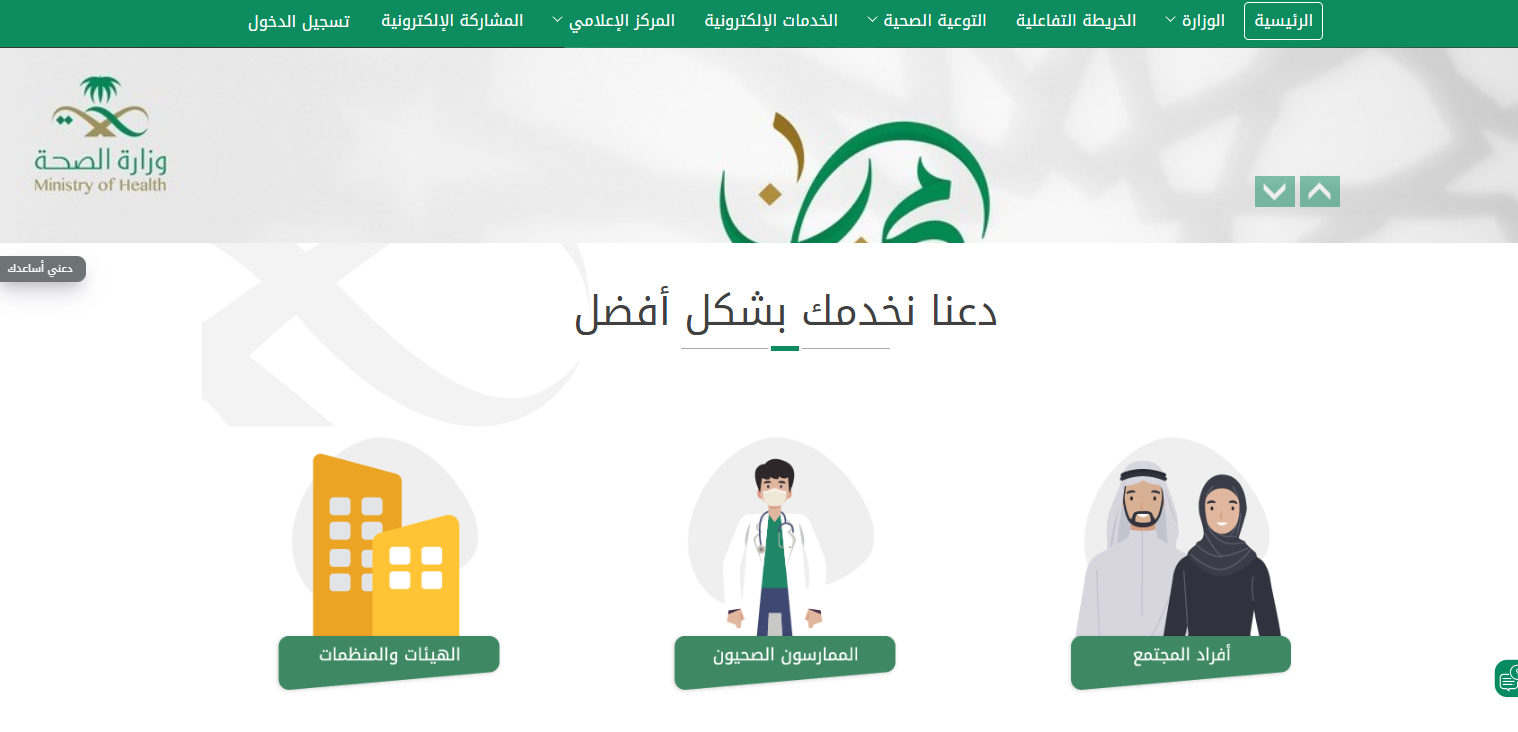 - قم بالدخول إلى الموقع الإلكتروني الخاص بوزارة الصحة السعودية من هنا.