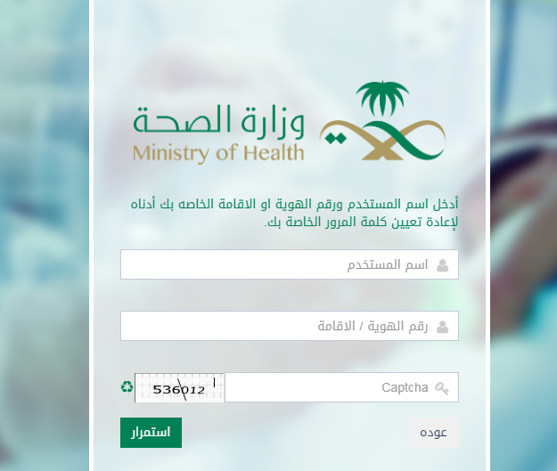 تسجيل دخول موارد وزارة الصحة للخدمات الصحية