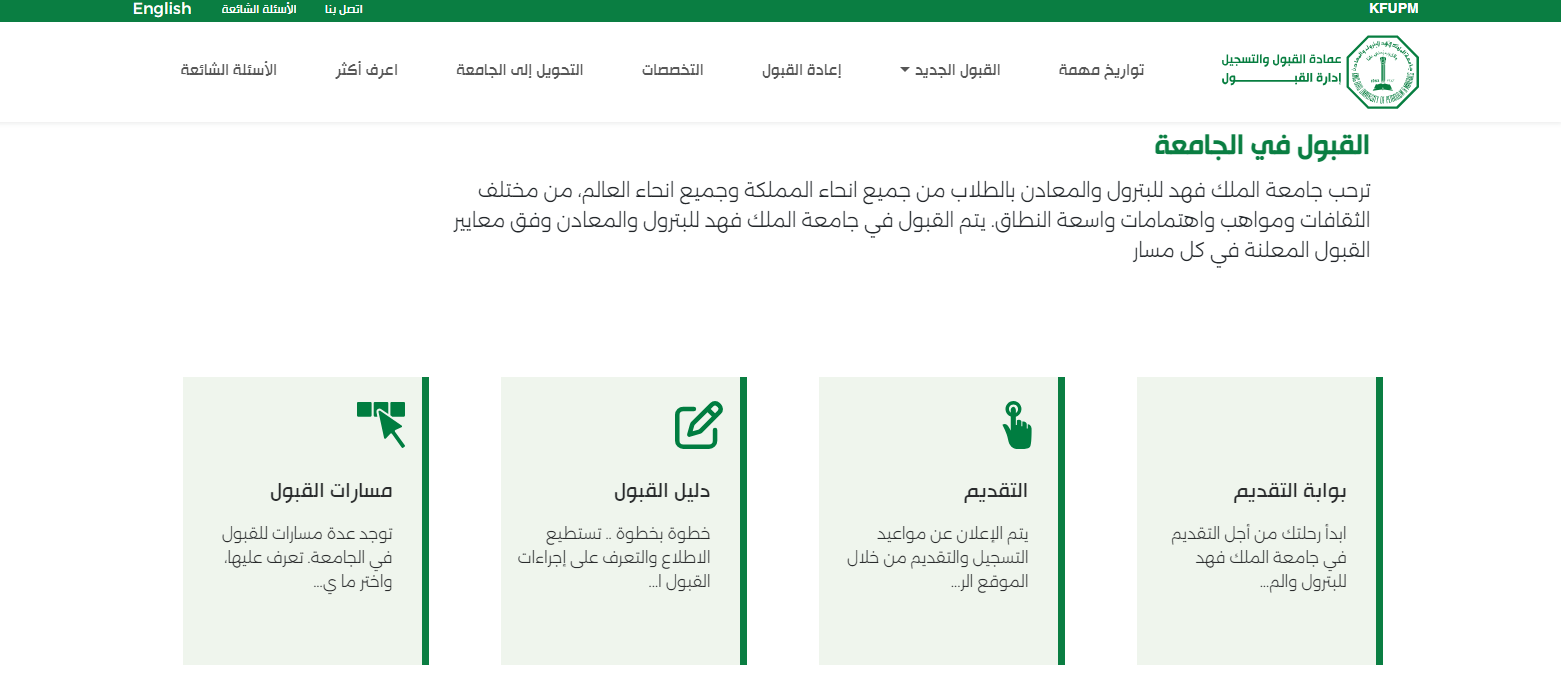 - الدخول على الموقع الإلكتروني الرسمي الخاص بجامعة الملك فهد للبترول والمعادن، من هنا.