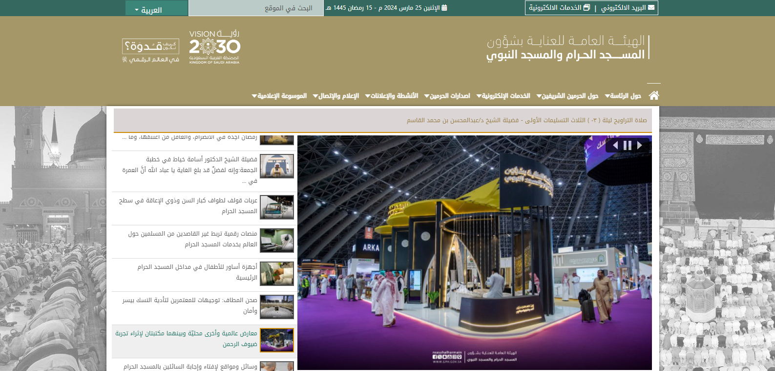 توفر منصة الهيئة العامة للعناية بشؤون المسجد الحرام والمسجد النبوي الشريف إمكانية التقديم على طلب الاعتكاف في المسجد الحرام حتى يتم اكتمال العدد المسموح به للتسجيل، حيث أن الهيئة تحدد عدد في كل عام يسمح لهم بالاعتكاف في الحرم المكي في آخر عشر أيام شهر رمضان المبارك.