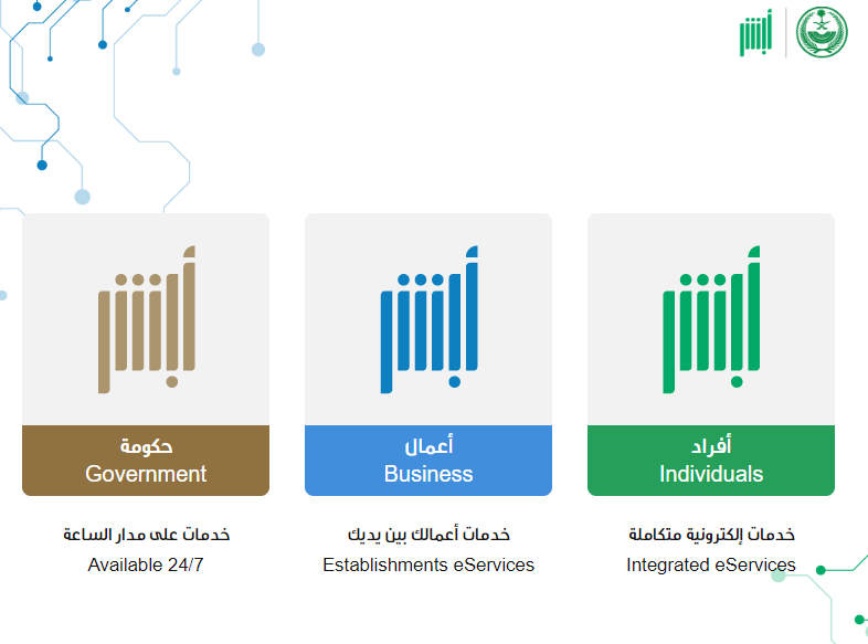 - قم بالانتقال إلى منصة أبشر الإلكترونية من هنا.
