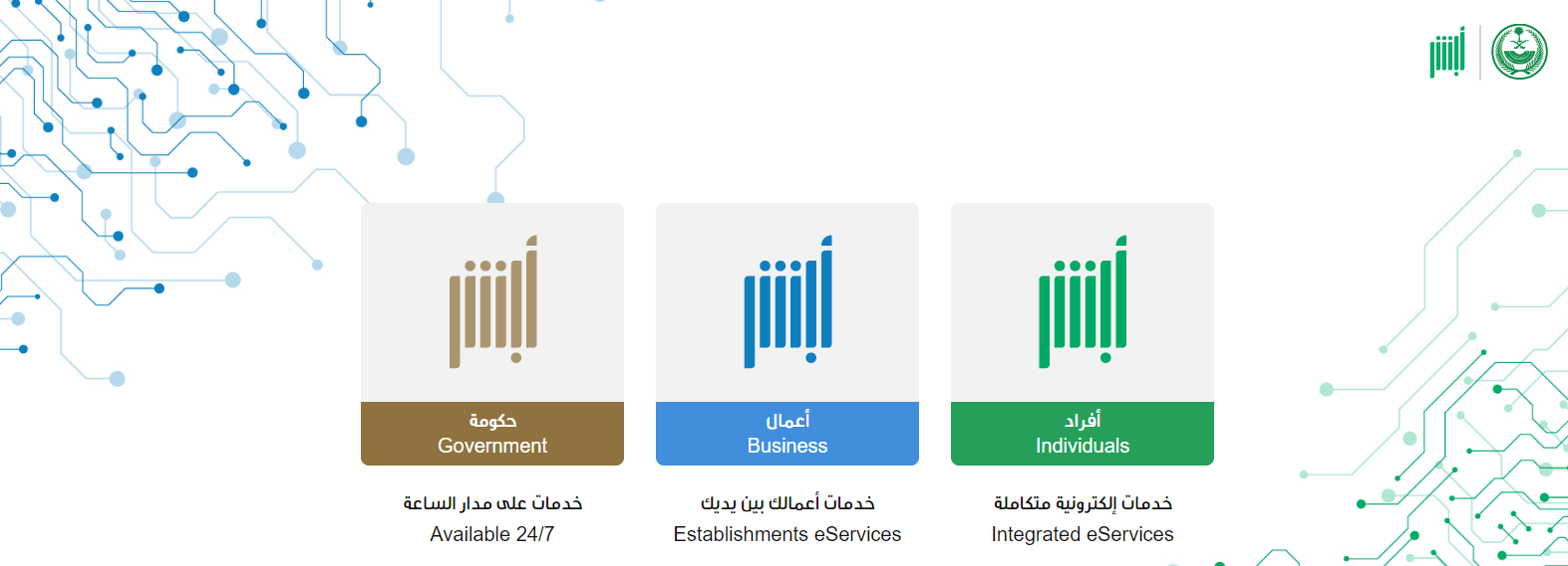 - قم بالتوجه إلى منصة أبشر الإلكترونية "من هنا".
