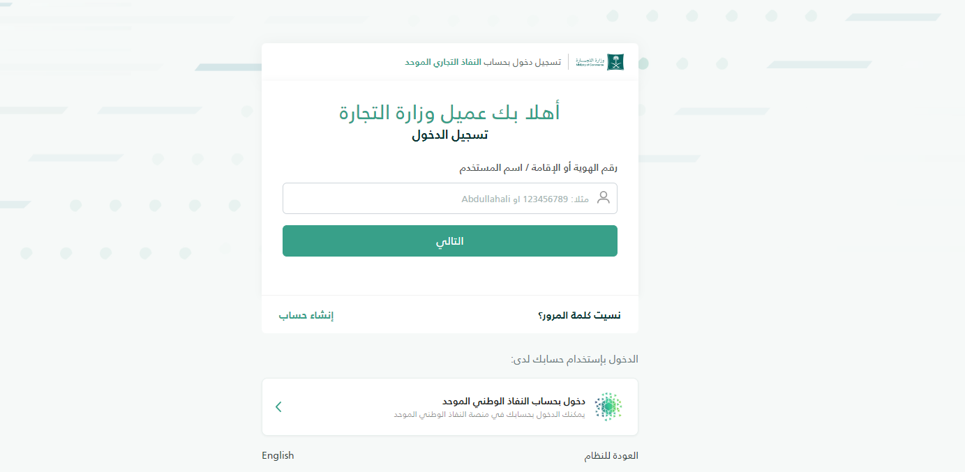 - أو تسجيل الدخول عبر بوابة النفاذ الوطني الموحد.