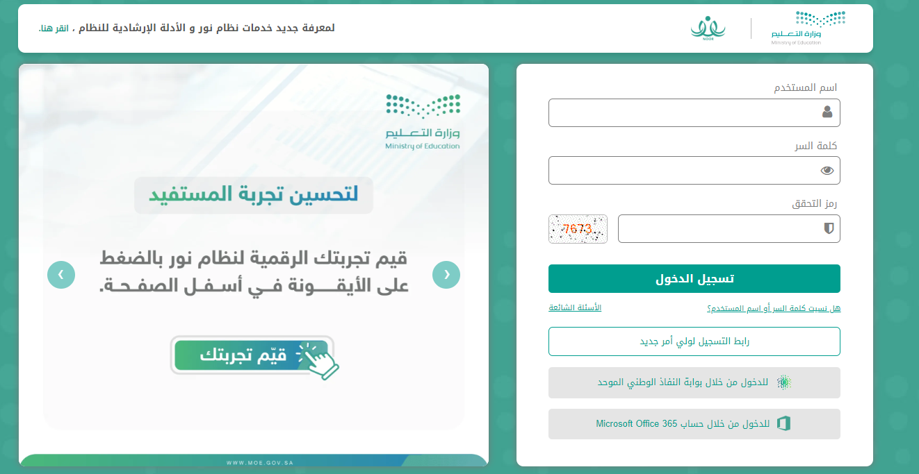 - يجب الدخول إلى منصة نور التعليمية الإلكترونية "من هنا".
