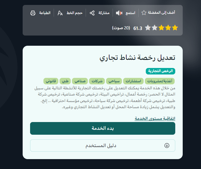 - من ثم اضغط على خدمة تعديل رخصة تجارية.