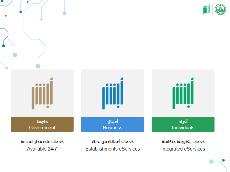 - الذهاب إلى منصة أبشر الإلكترونية.