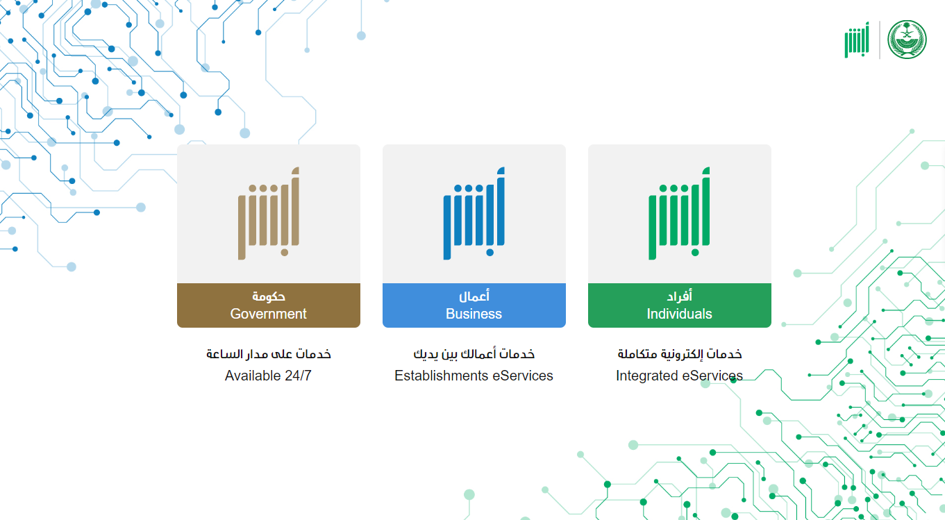 - قم بالتوجه إلى منصة أبشر الالكترونية "من هنا".