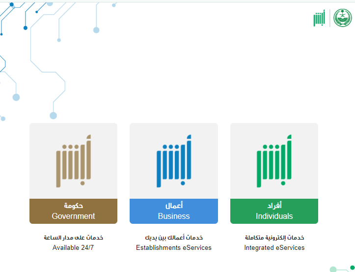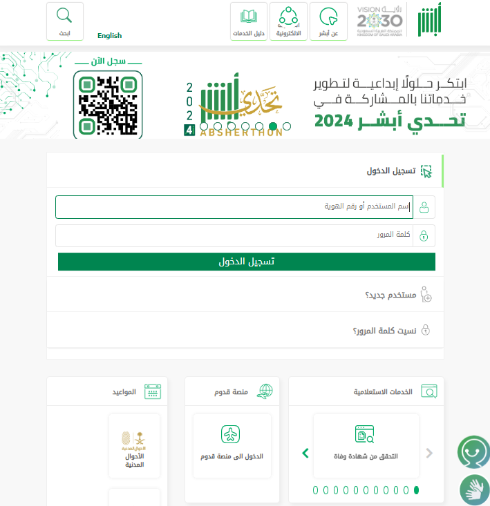 - قم بالدخول إلى الموقع الرسمي لمنصة أبشر الإلكترونية.