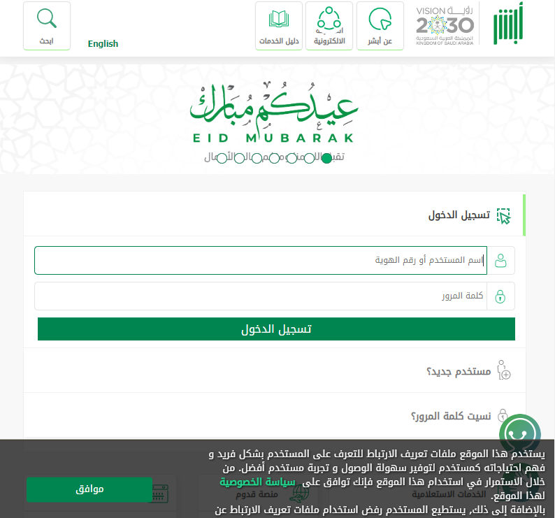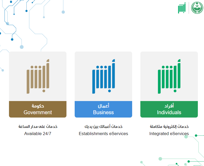 - قم بالدخول على الموقع الإلكتروني الخاص بـ أبشر .