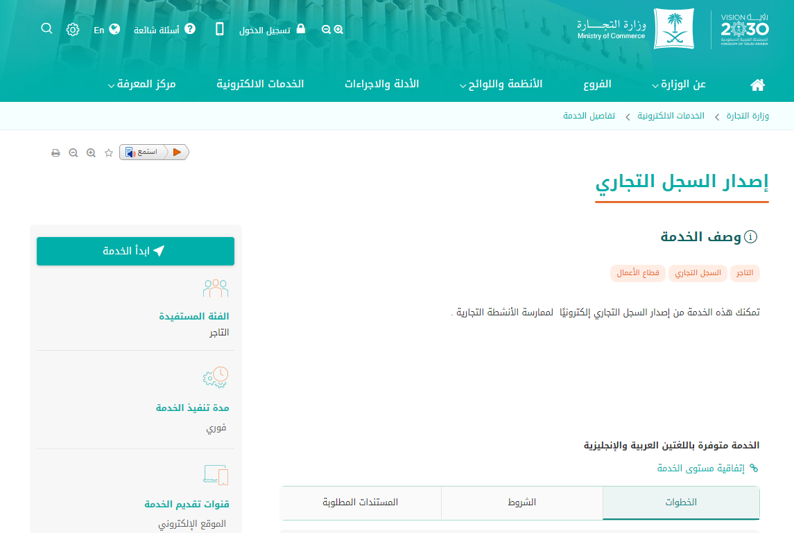 - يتم الانتقال إلى الموقع الرسمي الخاص بوزارة التجارة السعودية من هنا.