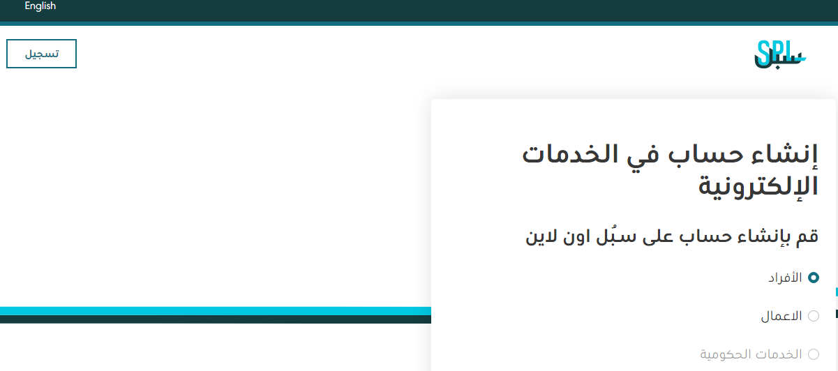 - تظهر في الصفحة التالية عدة خيارات وهي أفراد وأعمال وخدمات حكومية فيتم تحديد "الأفراد" ثم الضغط على زر متابعة.