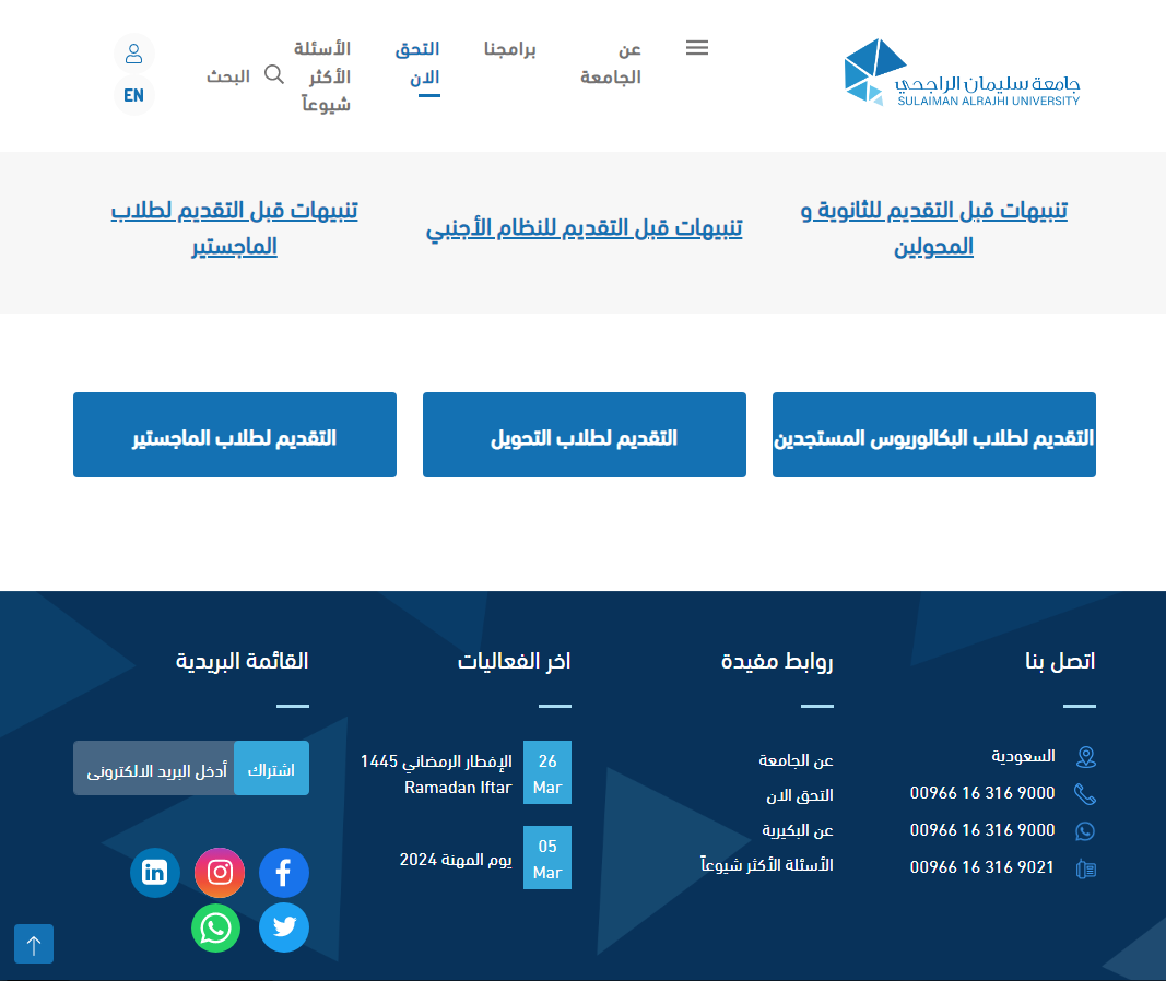- تقديم طلب نموذج التمويل على الموقع الرسمي جامعة سليمان الراجحي