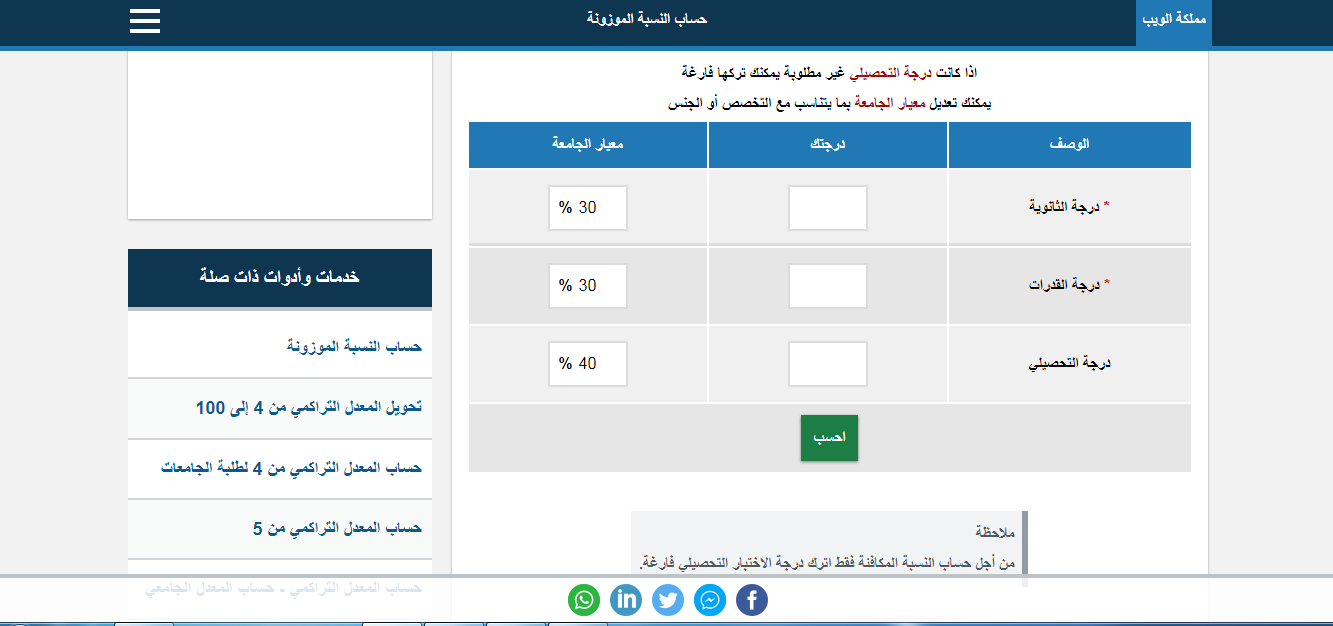- تظهر أمامك النسبة الموزونة، ومطابقتها مع النسبة التي تحددها الجامعة.