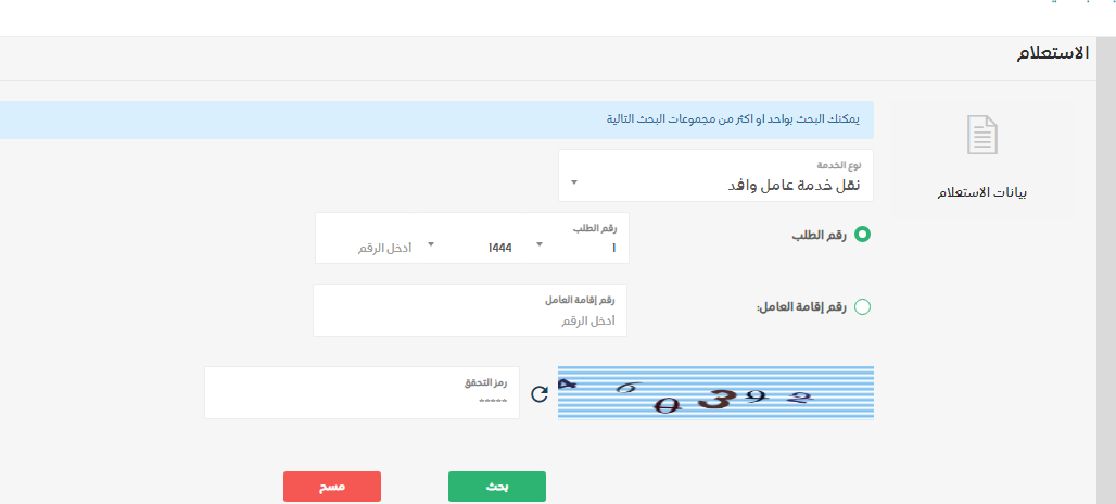 - اضغط على الاستعلام عن إصدار طلب.