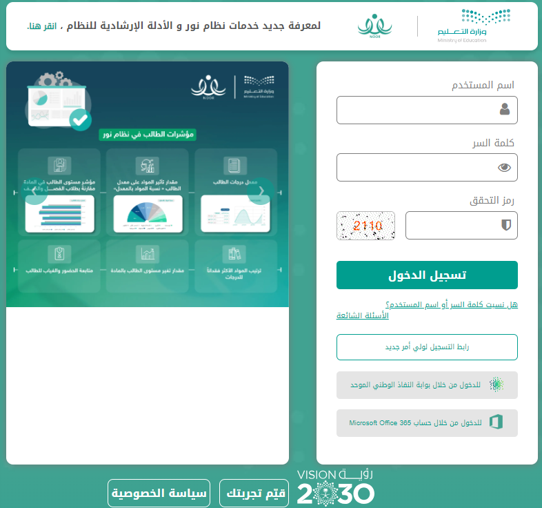 طريقة التسجيل في نظام نور