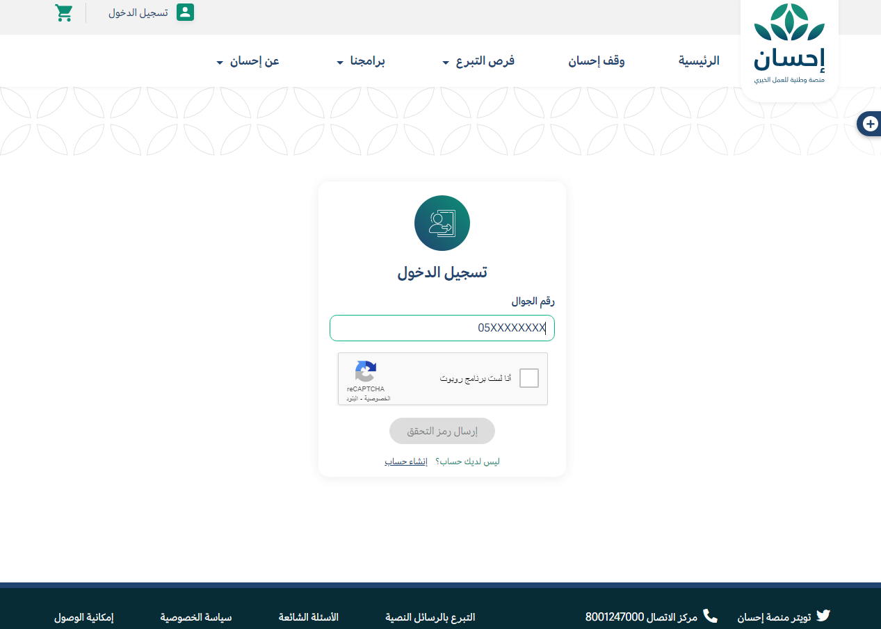 - الدخول على الموقع الرسمي لمنصة إحسان.
