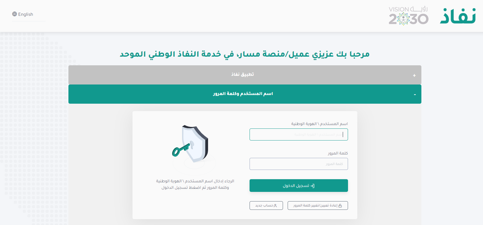 - اضغط على تبويب تسجيل الدخول عبر بوابة النفاذ الوطني الموحد.
