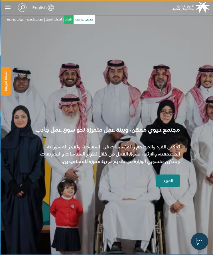 - الدخول على الموقع الرسمي لوزارة الموارد البشرية والتنمية الاجتماعية.