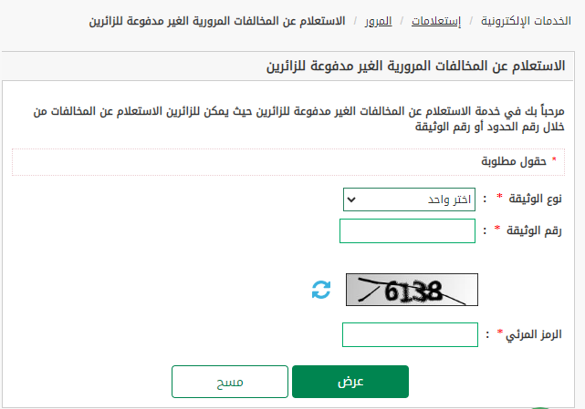 استعلام برقم المخالفة وطريقة سداد المخالفات الكترونيًا