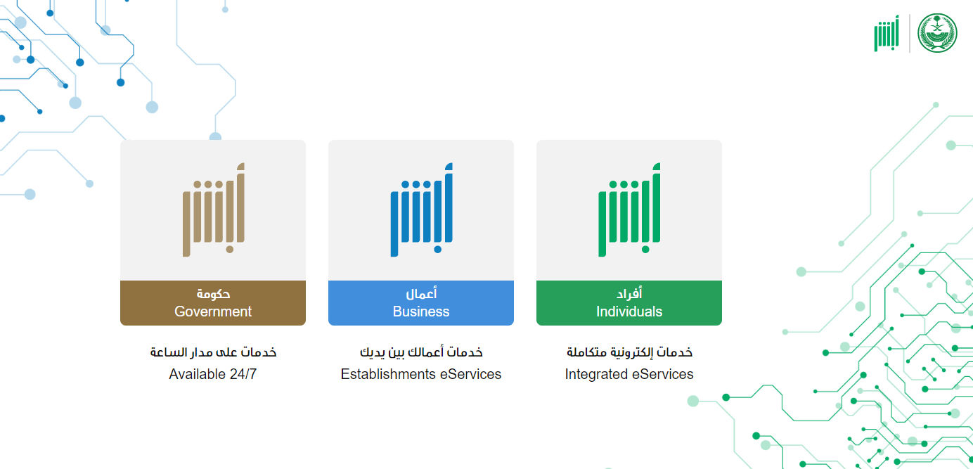 - قم بالتوجه إلى منصة أبشر الإلكترونية "من هنا".