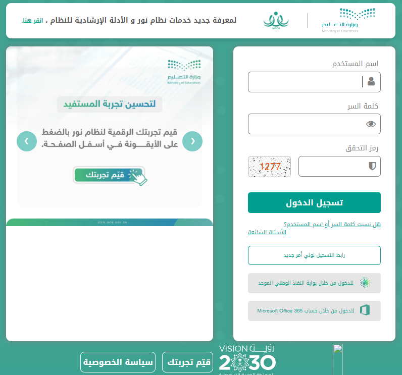 - قم الدخول على الموقع الرسمي لمنصة نور من هنا.