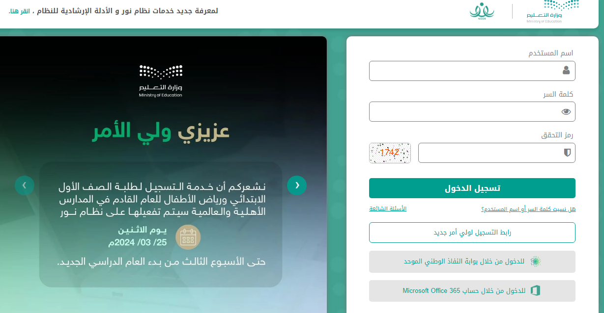 - الذهاب إلى الموقع الإلكتروني الرسمي لمنصة نور " من هنا".