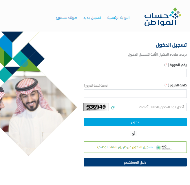 - قم بكتابة البيانات الخاصة بالدخول، أو قم بالدخول عبر "النفاذ الوطني".