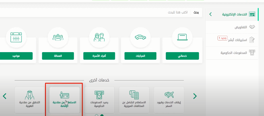 - انقر فوق الاستعلام العام عن صلاحية الإقامة.