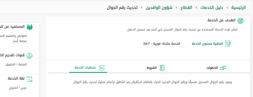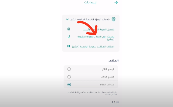 - اضغط على خدمة تحديث رقم الجوال للهوية الرقمية أبشر.