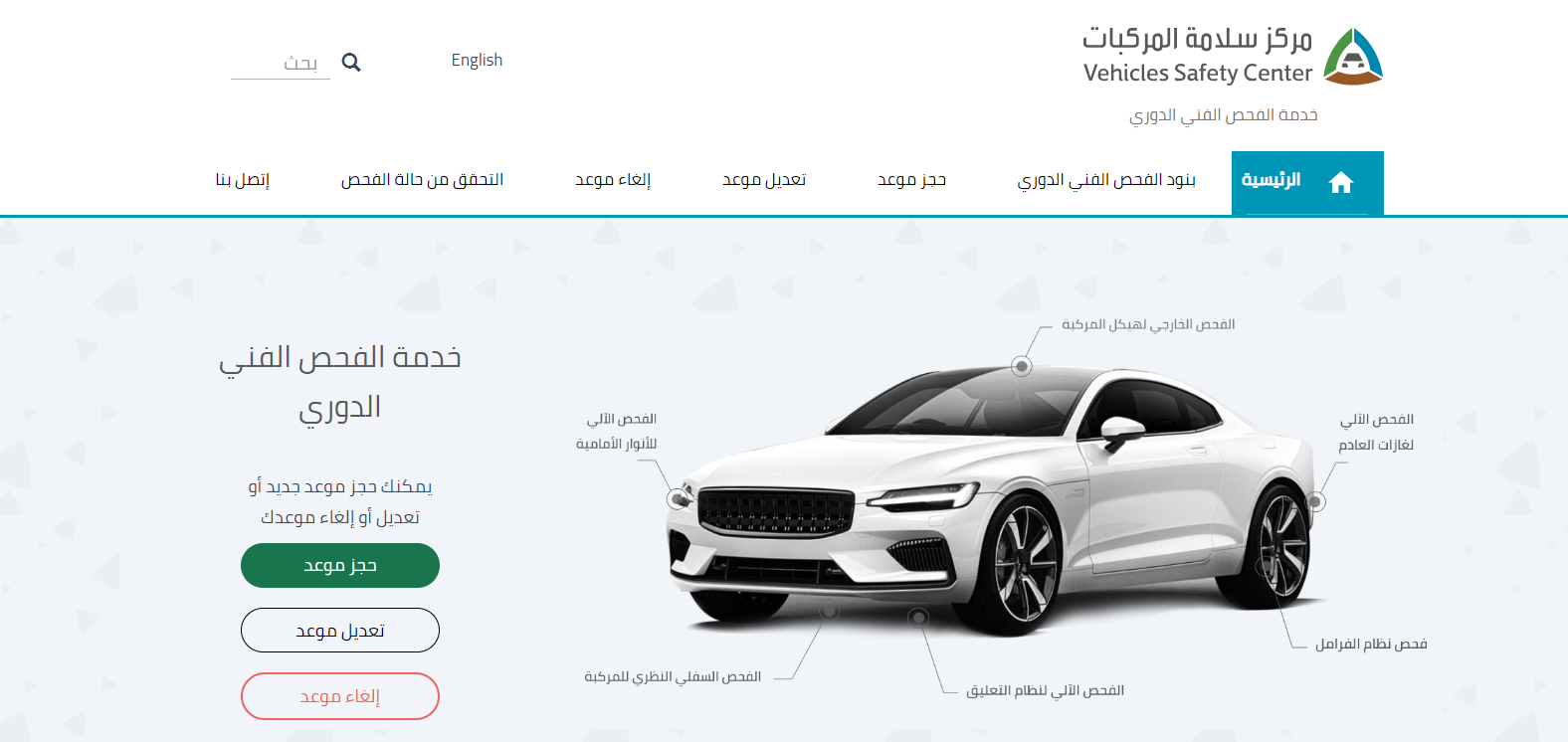 يمكن أن يتم حجز موعد فحص فني دوري للسيارة بطريقة إلكترونية عبر اتباع الخطوات التالية: