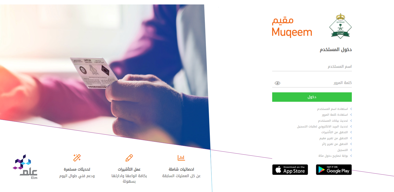 - قم بالتوجه إلى منصة مقيم الخاصة بجميع معاملات المقيمين في المملكة "من هنا".