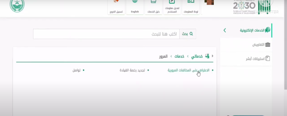 - قم باختيار الاعتراض على المخالفات المرورية.