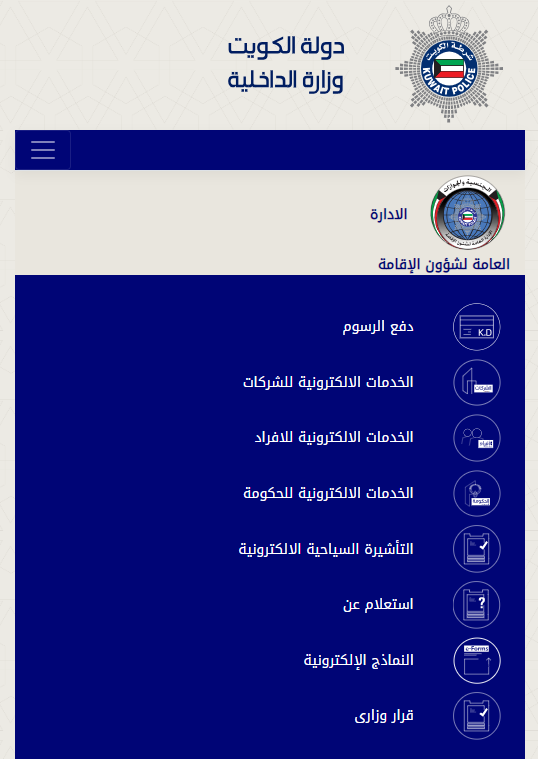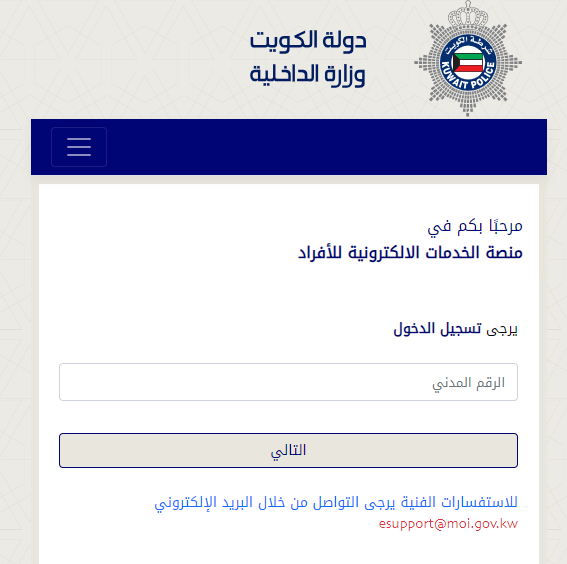 - الدخول إلى الموقع الإلكتروني الخاص بوزارة الداخلية في الكويت.