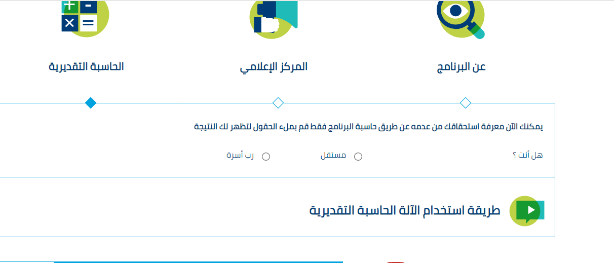 الحاسبة التقديرية من ضمن الآليات المميزة التي يمكن الحصول عليها من خلال دعم حساب المواطن للتحقق من الراتب الشهري المستحق، ويتم استخدامها عبر تطبيق خطوات طريقة الاستعلام عن مبلغ الدعم المستحق من حساب المواطن: