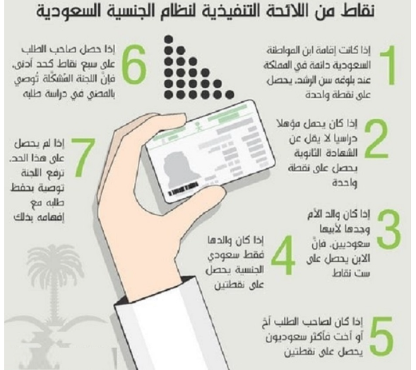 - إذا أراد الشخص المتقدم الحصول على الجنسية السعودية ان يكون قادراً علي الاندماج في المجتمع السعودي.
