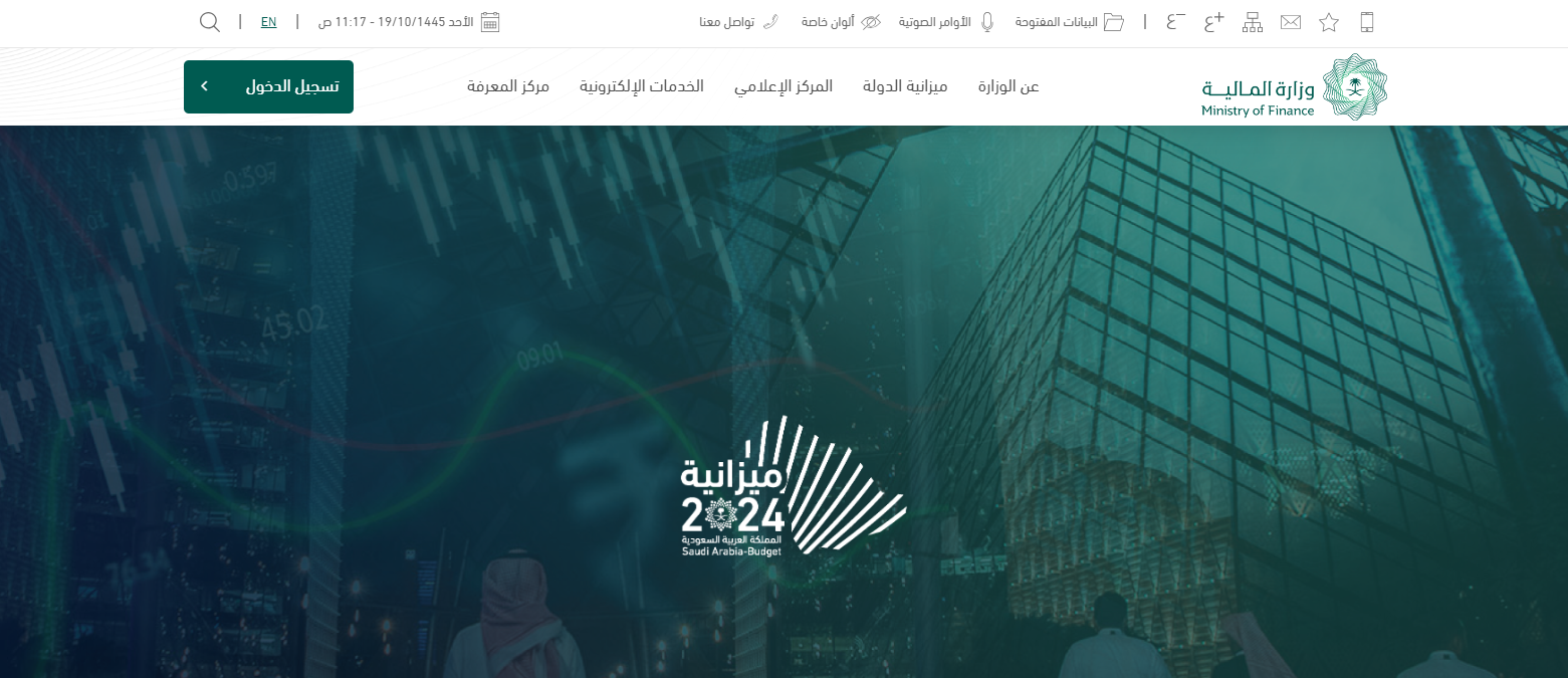 - الدخول إلى الموقع الرسمي الخاص بوزارة المالية السعودية، من هنا.