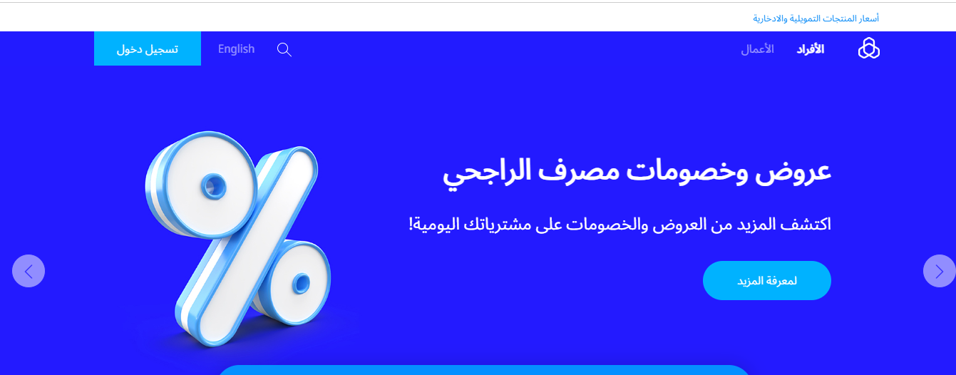 - الدخول إلى الموقع الرسمي الخاص ببنك الراجحي، من هنا.