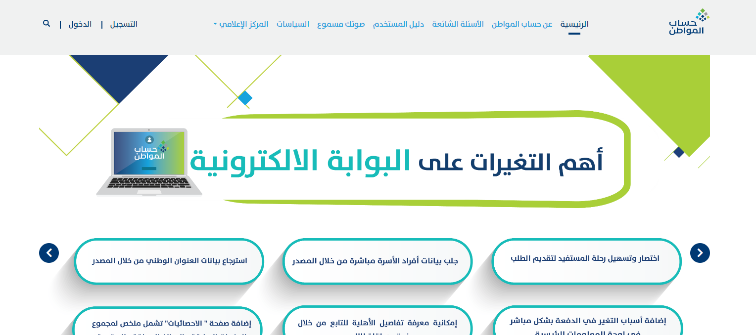 - الدخول إلى الموقع الرسمي لبرنامج حساب المواطن، من هنا.