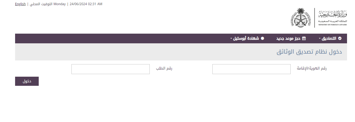 - قم بالولوج إلى الخدمة مباشرةً الموقع الرسمي الإلكتروني وزارة الخارجية.