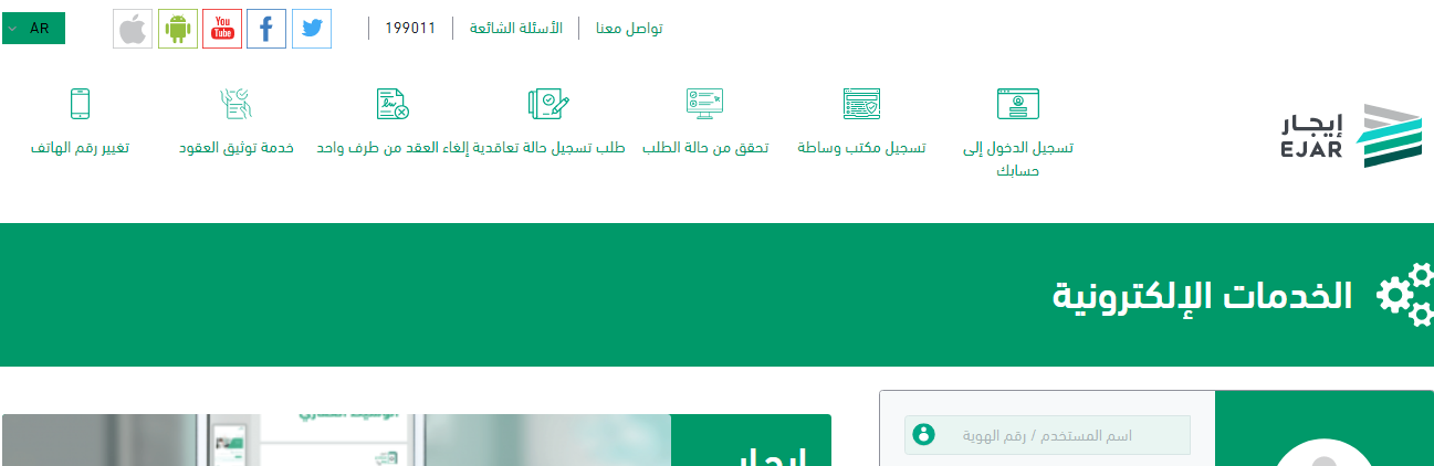 - قم بزيارة الصفحة الرئيسية الإلكترونية إيجار.