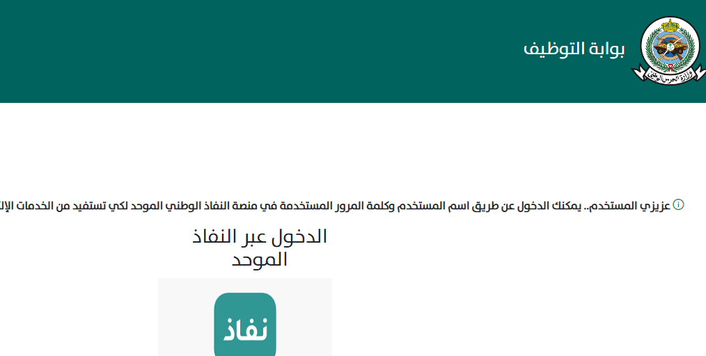 - قم بالولوج إلى الموقع الرسمي الإلكتروني بوابة التوظيف وزارة الحرس الوطني.