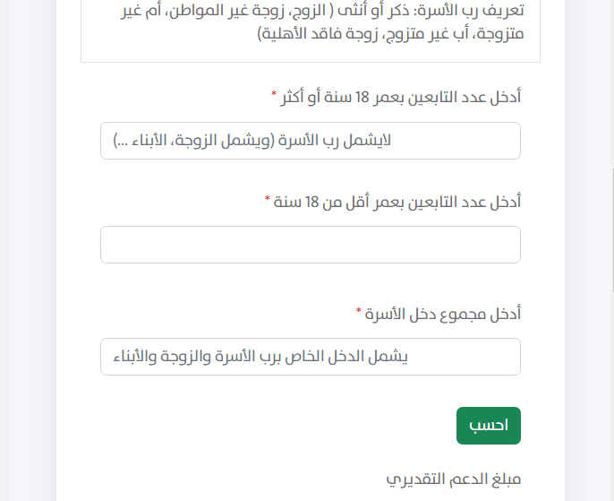 - حدد إذا كان المستفيد مستقل، أم رب العائلة.