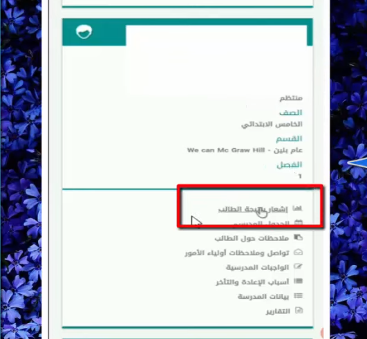 - اختر من القائمة إشعار بنتيجة الطالب.